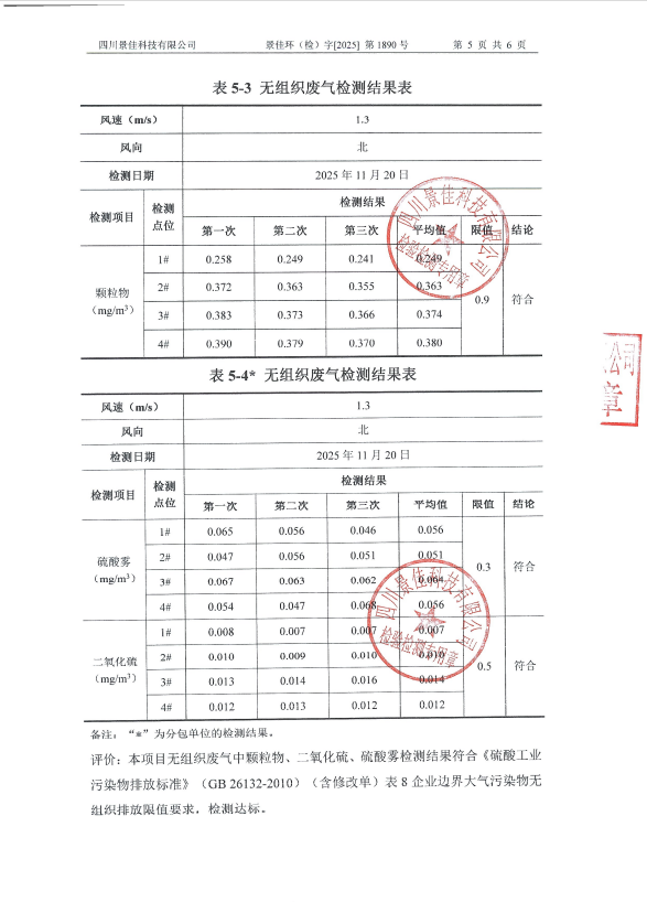 自貢金星化工有限公司自行監(jiān)測2025年報告