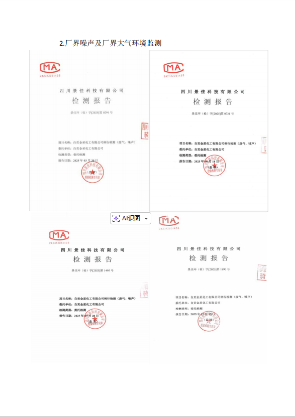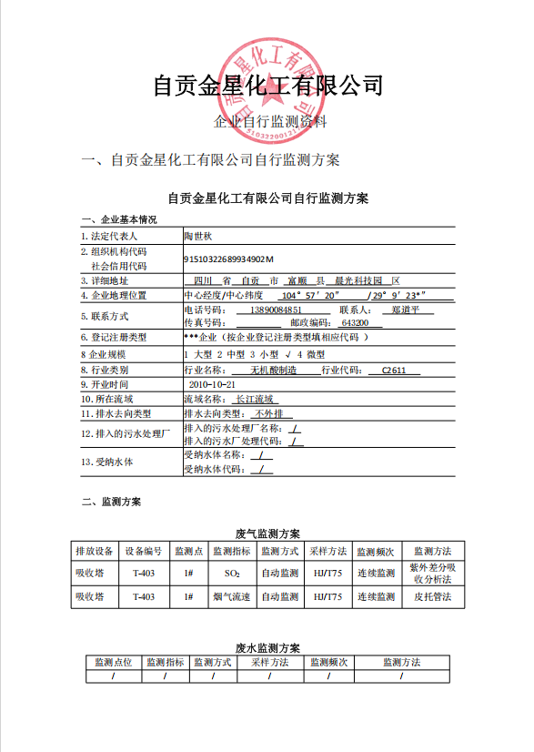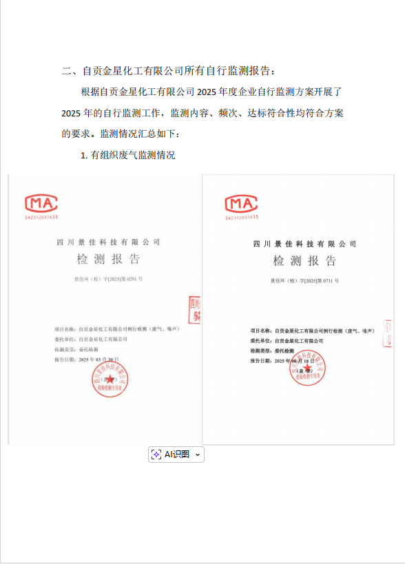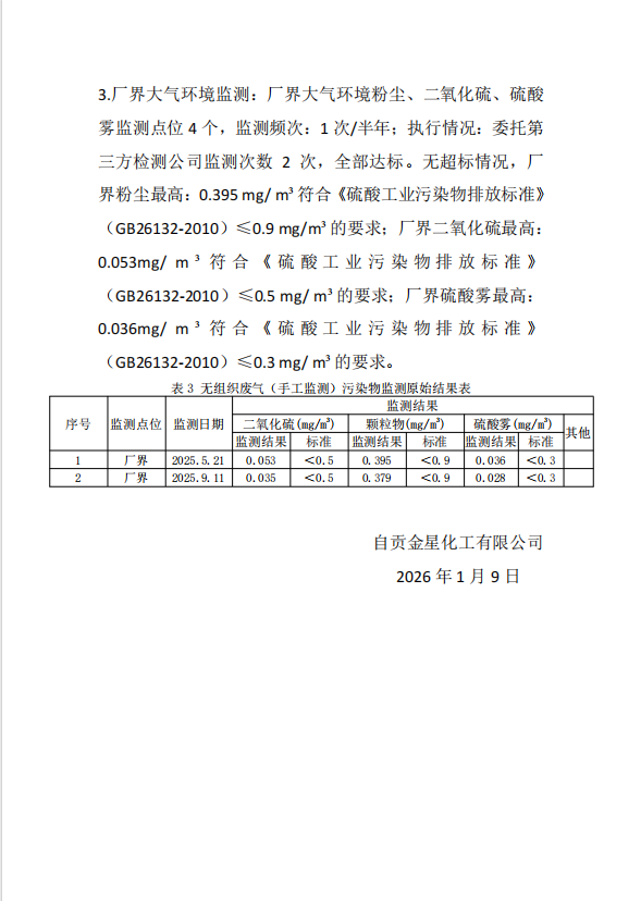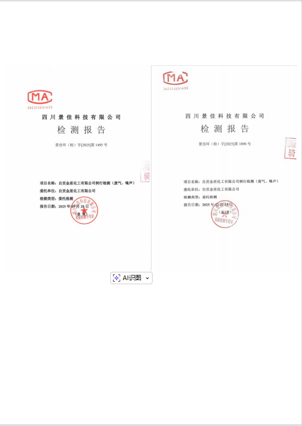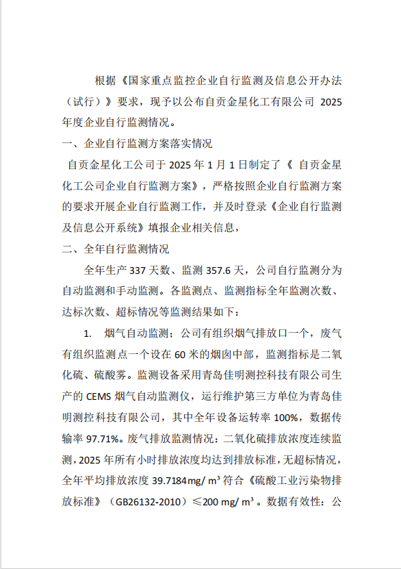自貢金星化工有限公司自行監(jiān)測2025年報(bào)告